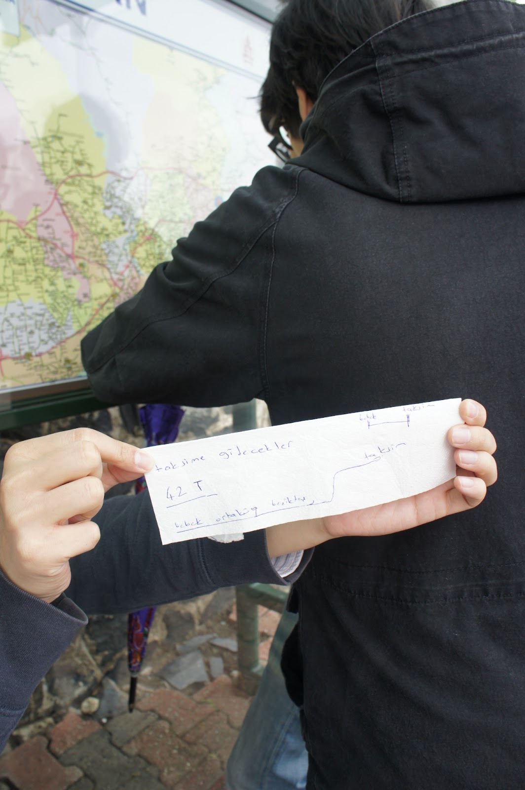 但還是非常熱心的用衛生紙畫了路線圖,還寫上我們應該要坐的車號42T,坐到Bebek再走路到塔克辛廣場