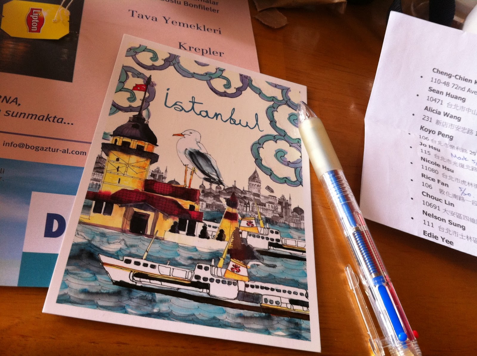 吃飯時間就是我的明信片時間,土耳其的郵票一張2TL(32元),我大概要寫20張,超貴